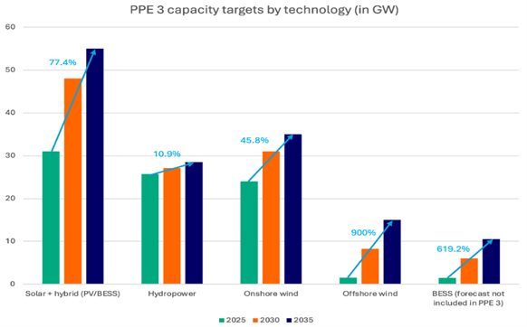 Demand: Electricity demand is expected to increase, driven by factors such as industrial electrification, transport (EVs), heat pumps, and the expansion of data centres. Targets aim for 60% decarbonised energy use by 2030 and 70% by 2035, up from 42% in 2023. A national electrification plan will be published in May 2026.